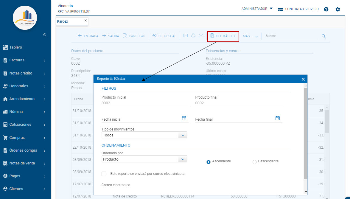 Nota: Desde aspel ADM Tienda se visualizará que la sesión se encuentra cerrada. Si la caja se encuentra en estatus "Cerrada", el botón "Cerrar sesión" se visualizará inhabilitado. Reporte de caja Cuando se requiera generar el reporte, con ayuda del botón